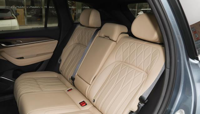 实际的空间很宽敞,无论是前排还是后排,都有较大的富余,即便是1米8的男性用户坐在后排也能轻松翘起二郎腿,包括后备箱容积也很大,能放进去四个中等大小的行李箱,如果想要拉点货物,还可以把后排座椅放平,基本上相当于一台小货车。舒适向的设计和配置也比较丰富,座椅是真皮包裹,车内轻易摸得到的地方都是软的,大量软性包裹还有一个优点,那就是隔绝噪音,加上电动感应尾门、手机无线充电、座椅加热/通风/按摩、燕飞利仕音响、72色氛围灯、三温区空调,又实用又舒适。