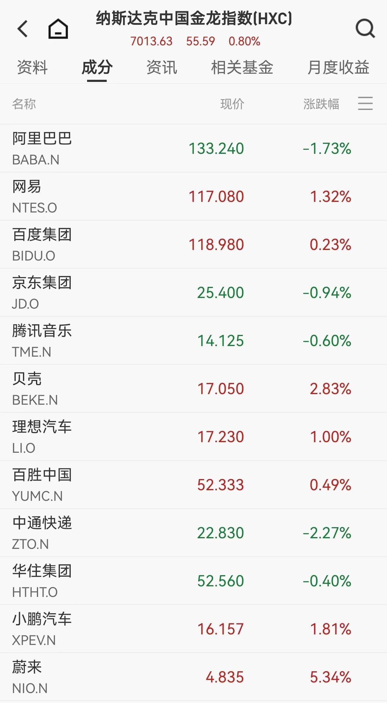 中概股方面,多数个股录得上涨,纳斯达克中国金龙指数收涨0.8%。具体来看,新能源汽车与自动驾驶板块表现亮眼,蔚来涨5.5%,小马智行、文远知行涨超4%,小鹏汽车涨超1%;互联网龙头多数上行,小米涨超4%,网易、腾讯、美团涨超1%,新东方涨超 2.7%。也有部分个股出现回调,爱奇艺、中通快递跌超2%,阿里巴巴、京东亦小幅收跌。